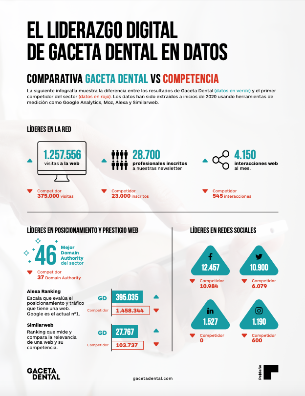 Solo en 2019, www.gacetadental.com registró 1.257.556 visitas, cerca de un millón de visitantes por encima de su inmediato perseguidor.
