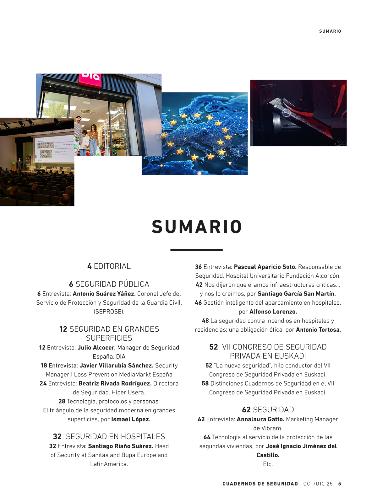 Este número de Cuadernos de Seguridad incluye un amplio tema sobre Seguridad en Grandes Superficies Comerciales, con entrevistas a directores/responsables de Seguridad. Además recoge un monográfico sobre Seguridad en Hospitales.